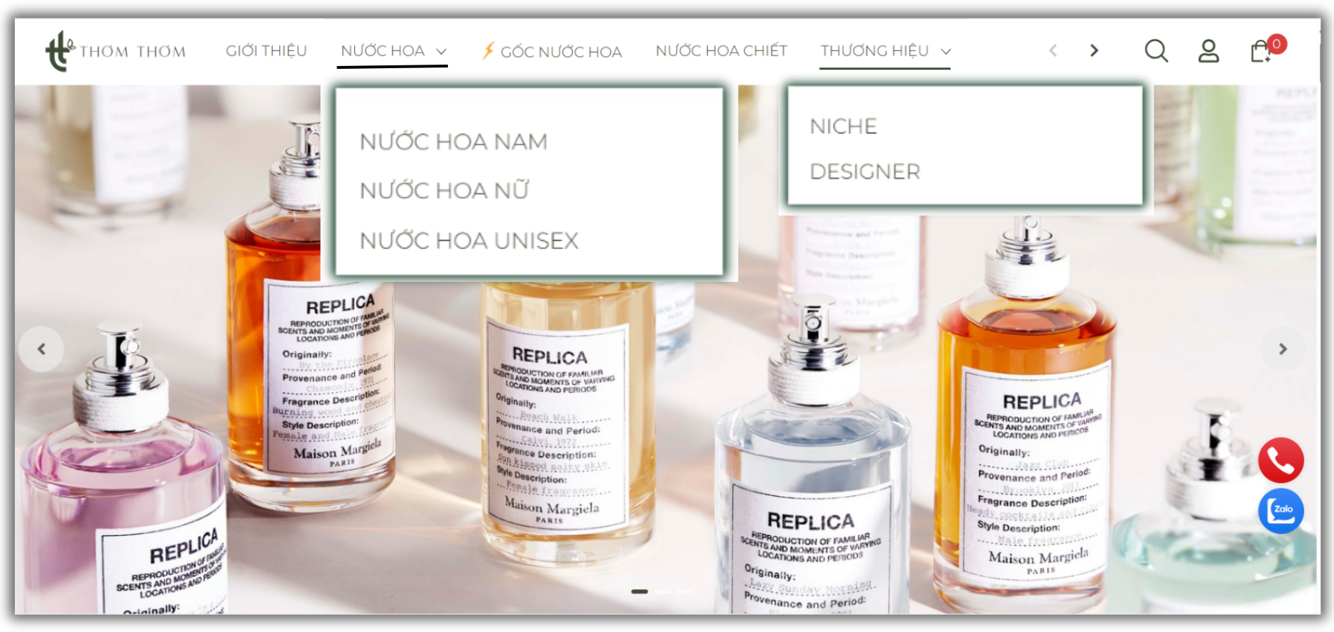 - Phân loại danh mục khoa học: nước hoa chiết, fullsize, niche, xa xỉ.